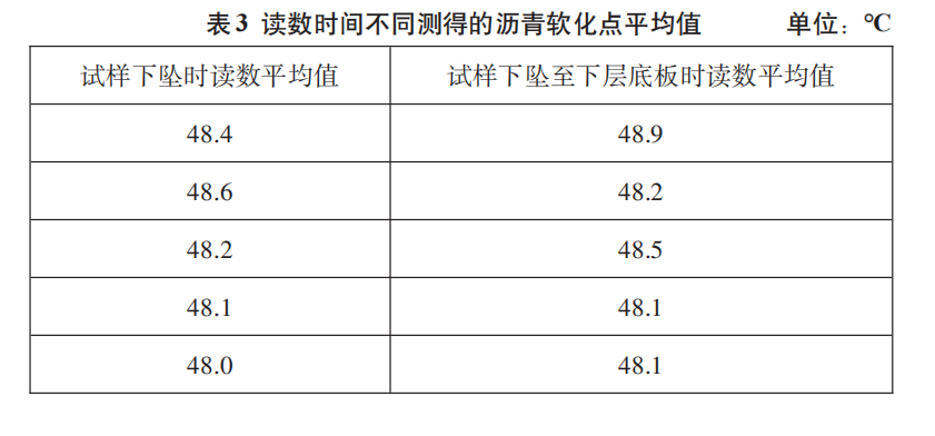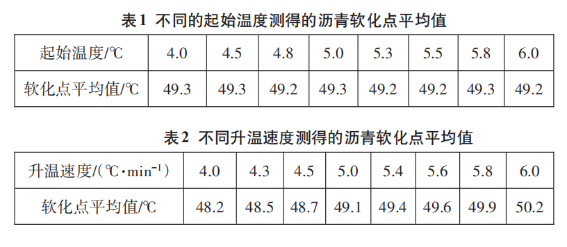 沒有同步升溫,會造成測出的結(jié)果軟化點偏高,讀數(shù)時間會對軟化點結(jié)果造成嚴重影響。在加熱過程中,應(yīng)記錄每