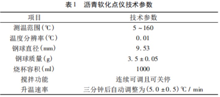 1. 1 儀器選用的是上海昌吉地質(zhì)儀器有限公司生產(chǎn)的SYD - 2806G 型全自動瀝青軟化點試驗器,其各項指標如表 1。